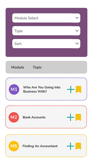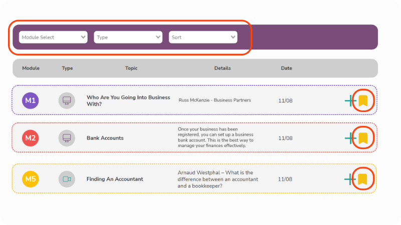 The platform includes a whole host of features to support you on your new business journey, everything from bookmarking so you can easily save important information, to a resource library packed full with helpful guides, videos, blogs, checklists and more.